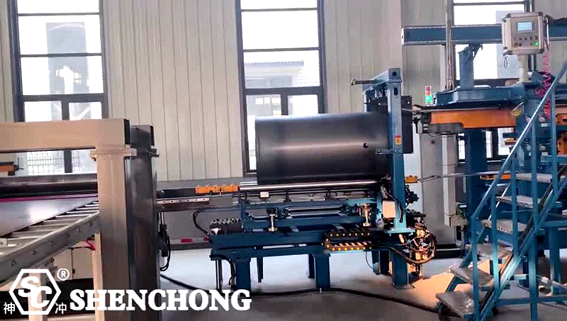 System automatyzacji walcowania blach SC składa się z walcarki do blach, automatyczne urządzenie do załadunku i rozładunku, inteligentne oprogramowanie sterujące i moduły detekcji. System może zautomatyzować cały proces obsługi blachy, od pobierania materiału, centrowania, gięcia wstępnego, walcowania po rozładunek. System wykorzystuje roboty lub metody obsługi kratownic i jest połączony z walcarką do blach w celu zapewnienia kontroli. System charakteryzuje się wysoką precyzją walcowania, stabilną wydajnością i możliwością bezobsługowej pracy ciągłej, co czyni go szczególnie przydatnym w produkcji seryjnej, takiej jak części cylindryczne, kanały powietrzne, rury i korpusy zbiorników ciśnieniowych.